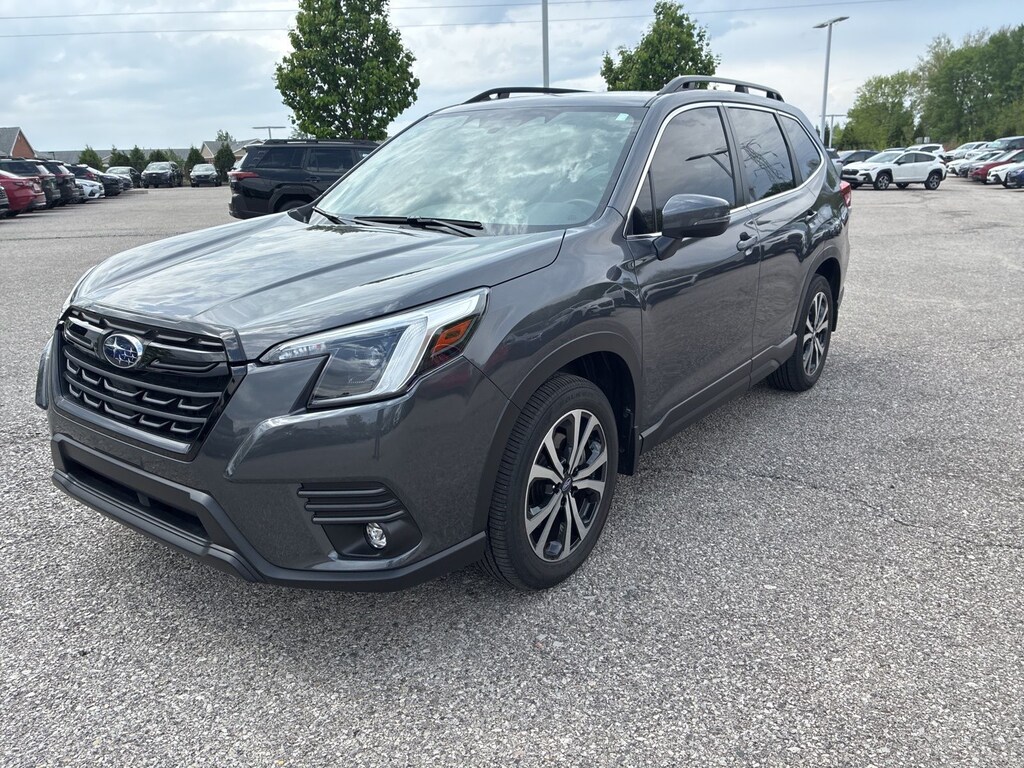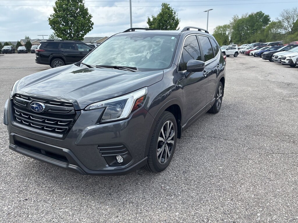 Recent Arrival! 2024 Subaru Certified. Gray AWD Forester Limited Lineartronic CVT 3.70 Axle Ratio, 4-Wheel Disc Brakes, 6 Speakers, ABS brakes, Air Conditioning, Alloy wheels, AM/FM radio: SiriusXM, Anti-whiplash front head restraints, Auto High-beam Headlights, Automatic temperature control, Brake assist, Bumpers: body-color, Driver door bin, Driver vanity mirror, Dual front impact airbags, Dual front side impact airbags, Electronic Stability Control, Emergency communication system: STARLINK Safety and Security (Subscription Required), Exterior Parking Camera Rear, Four wheel independent suspension, Front anti-roll bar, Front Bucket Seats, Front Center Armrest, Front dual zone A/C, Front fog lights, Front reading lights, Fully automatic headlights, Heated door mirrors, Heated Front Bucket Seats, Heated front seats, Illuminated entry, Knee airbag, Leather Shift Knob, Leather steering wheel, Low tire pressure warning, Occupant sensing airbag, Outside temperature display, Overhead airbag, Overhead console, Panic alarm, Passenger door bin, Passenger vanity mirror, Perforated Leather-Trimmed Upholstery, Power door mirrors, Power driver seat, Power Liftgate, Power moonroof: Panoramic, Power steering, Power windows, Radio data system, Radio: Subaru STARLINK 8.0" Multimedia Plus System, Rear anti-roll bar, Rear seat center armrest, Rear window defroster, Rear window wiper, Remote keyless entry, Roof rack: rails only, Security system, Speed control, Speed-sensing steering, Split folding rear seat, Spoiler, STARLINK/Apple CarPlay/Android Auto, Steering wheel mounted audio controls, Tachometer, Telescoping steering wheel, Tilt steering wheel, Traction control, Trip computer, Turn signal indicator mirrors, Variably intermittent wipers, and Wheels: 18" x 7.0 J Black Machine Finish Alloy.
