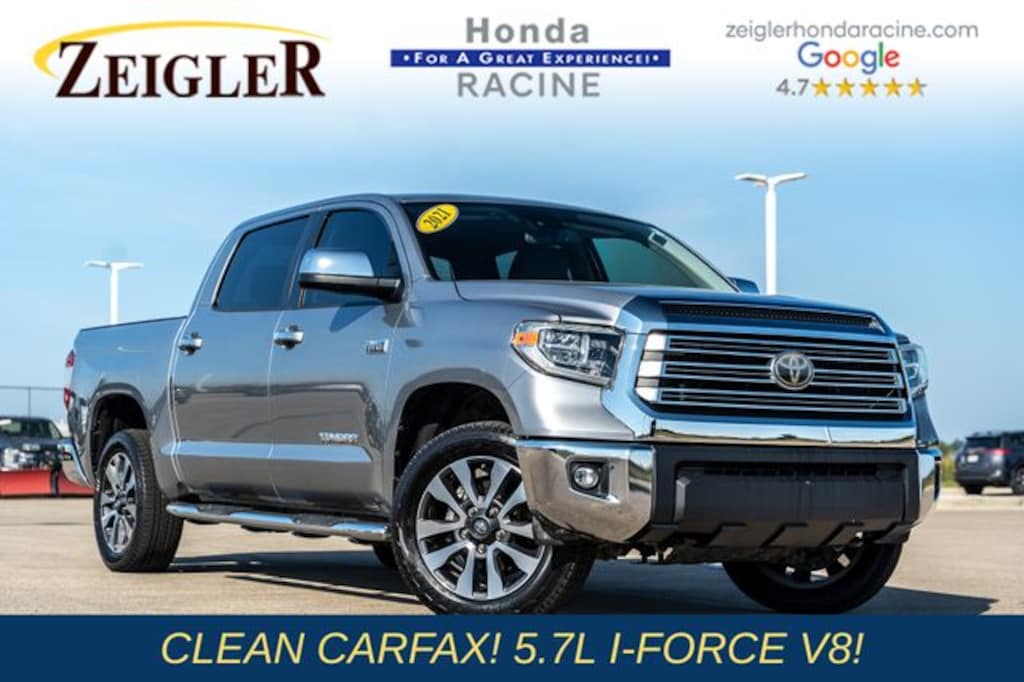 2021 Silver Sky Metallic Toyota Tundra Limited âFOR A GREAT EXPERIENCEâ visit Zeigler Honda of Racine, because we take pride in treating our customers like family, ensuring that your experience is one that you will never forget. We have 4.7 Google Rating! Making our store the highest rated Honda dealer in the state of Wisconsin! Every vehicle has been through a multi-point safety inspection and professionally cleaned and disinfected for your protection. With a convenient location off of I-94 at exit 333; we are proud to serve customers in Racine, Sturtevant, Caledonia, Mount Pleasant, Union Grove, Burlington, Kenosha, Bristol, Waukesha, Milwaukee, Oak Creek and many other surrounding areas! Our Sales Consultants are Factory Certified and have earned some of the highest customer satisfaction ratings in Southeast Wisconsin. We specialize in New Honda, Certified Pre-Owned Honda, as well as many other makes and models that fit all budgets and prices. We offer affordable purchase and leasing options. If you are traveling from Waukegan, Gurnee, Naperville, Pleasant Prairie, Antioch, Fox Lake, or even Madison, feel free to browse our entire inventory of new or pre-owned vehicles right from your home: zeiglerhondaracine.com. Even if we don't have the exact vehicle in our inventory, we will gladly bring one in for you and still guarantee the lowest price possible. A little further than a hop, skip or a jump? We can arrange shipping & delivery! Price may exclude certification, added accessories and/or packages, certain taxes, $399 doc fee, charges and/or fees. Dealer is not responsible for pricing errors, although we strive to be accurate, we are human. The value of used vehicles varies with mileage, usage and condition. Book values should be considered estimates only. Some of our used vehicles may be subject to unrepaired safety recalls. Check for a vehicle's unrepaired recalls by VIN at http://vinrcl.safercar.gov/vin/. See dealer for complete details.