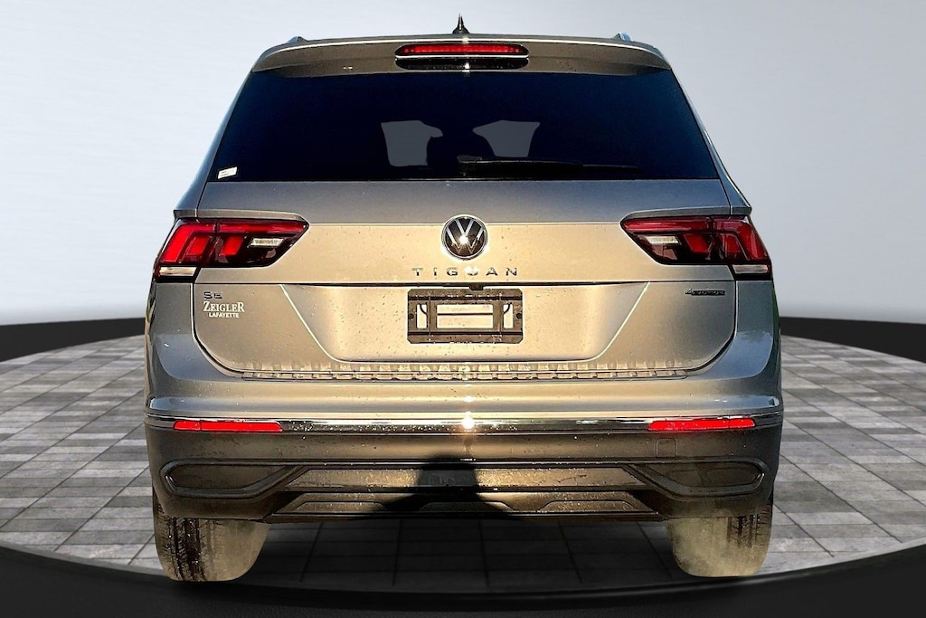 2023 Volkswagen Silver AWD Tiguan 2.0T SE 8-Speed Automatic with Tiptronic Odometer is 1463 miles below market average! Cleanest Tiguan I have even taken in on trade! 3.33 Axle Ratio, 4-Wheel Disc Brakes, 4-Wheel Independent Suspension, 6 Speakers, ABS brakes, Air Conditioning, Alloy wheels, AM/FM radio: SiriusXM with 360L, Auto-dimming Rear-View mirror, Automatic temperature control, Brake assist, Bumpers: body-color, Compass, Delay-off headlights, Driver door bin, Driver vanity mirror, Dual front impact airbags, Dual front side impact airbags, Electronic Stability Control, Emergency communication system: VW Car-Net Safe & Secure 5-year, Exterior Parking Camera Rear, Four wheel independent suspension, Front anti-roll bar, Front Bucket Seats, Front Center Armrest, Front dual zone A/C, Front reading lights, Fully automatic headlights, Heated door mirrors, Heated Front Comfort Seats, Heated front seats, Illuminated entry, Leather Shift Knob, Low tire pressure warning, Occupant sensing airbag, Outside temperature display, Overhead airbag, Overhead console, Panic alarm, Passenger door bin, Passenger vanity mirror, Perforated V-Tex Leatherette Seating Surfaces, Power door mirrors, Power driver seat, Power Liftgate, Power steering, Power windows, Radio data system, Radio: MIB3 Composition Media AM/FM/HD, Rain sensing wipers, Rear anti-roll bar, Rear reading lights, Rear seat center armrest, Rear window defroster, Rear window wiper, Remote keyless entry, Security system, Speed control, Speed-sensing steering, Split folding rear seat, Spoiler, Steering wheel mounted audio controls, Tachometer, Telescoping steering wheel, Tilt steering wheel, Traction control, Trip computer, Turn signal indicator mirrors, Variably intermittent wipers, and Wheels: 18" Dark Graphite Painted 10-Spoke Alloy.
