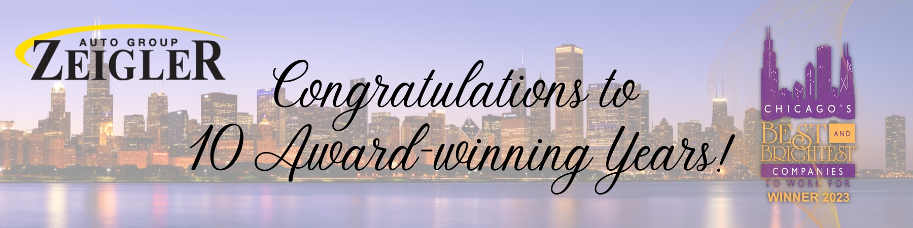 CHICAGO (May 1, 2023) - The National Association for Business Resources (NABR) has once again named Zeigler Auto Group one of Chicago's Best & Brightest Companies To Work For®, this is the 10th time the award-winning dealership group has earned this recognition, winning from 2012 to 2017, then again from 2019 forward. With a 1-10 ratio for winning, only the "Best and Brightest Companies in Chicago" are eligible to receive this coveted award, giving those earning this achievement a truly competitive edge. Besides this distinction the organization is also the only auto group to make the list for 10 years strong.