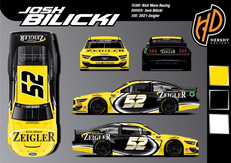 Zeigler Auto Group today announced that it will be sponsoring Josh Bilicki for the FireKeepers Casino 400 of the NASCAR Cup Series at Michigan International Speedway on Sunday, August 22, 2021 at 3:00 p.m. EST. Bilicki, who is part of the Rick Ware Racing (RWR) team, will be behind the wheel of number 52, a 2021 Ford Mustang featuring a Zeigler-sponsored wrap by Orion Biedrzycki of Hershy Designs. Zeigler will also be hosting a free, Meet & Greet event for Bilicki at Zeigler Motorsports, 5001 Park Circle Drive, on Saturday, August 21, 2021 from noon to 4:00 p.m. EST with opportunities for autographs, photos, and a chance to win tickets to the race the following day.